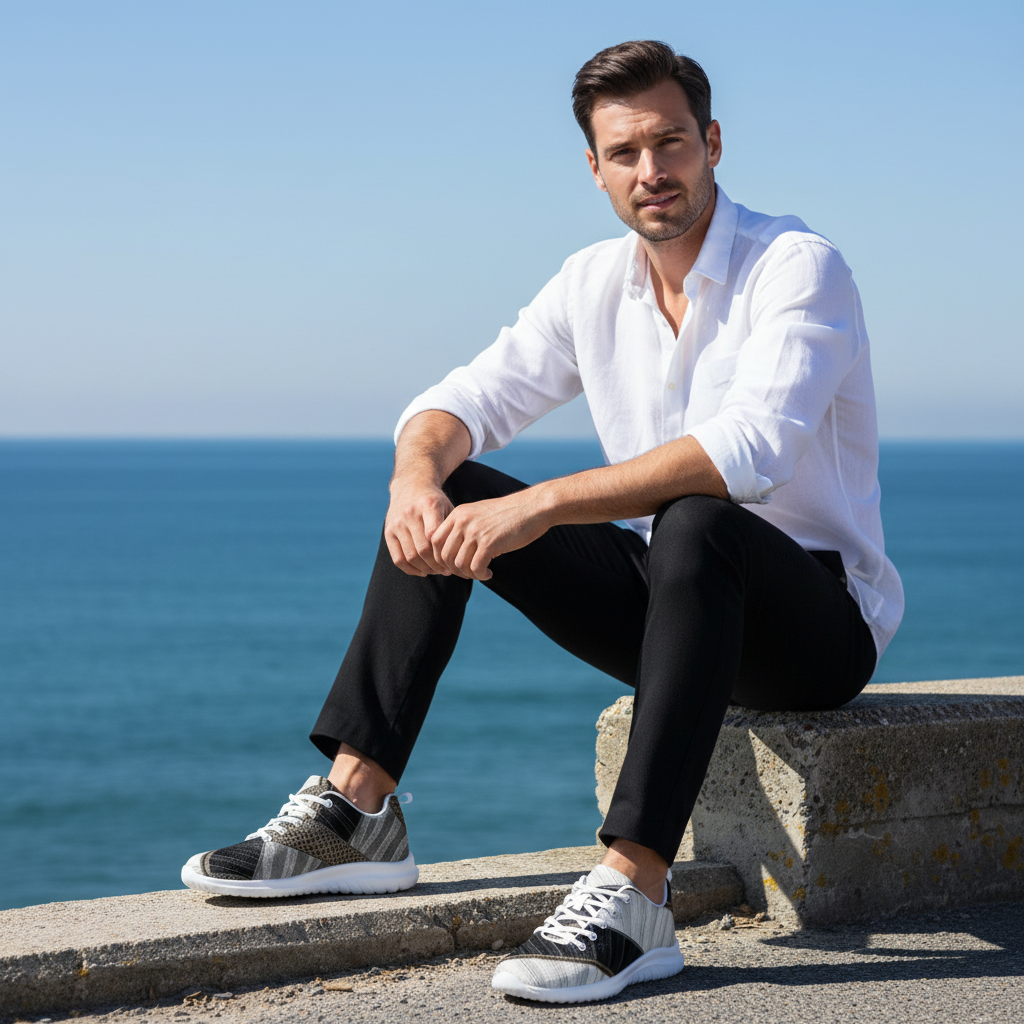 These Black & White Geometric Athletic Shoes are built for men who move with confidence. Whether you're strolling a coastal boardwalk, hitting the marina, or heading to a rooftop terrace — these shoes make the statement before you even say a word.